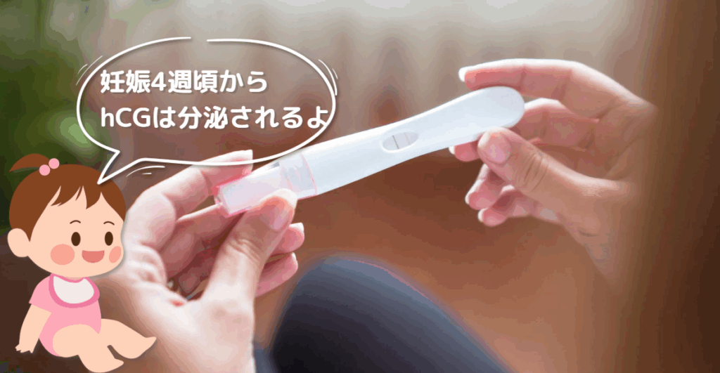 体内のhCGの数値が上昇していると、妊娠検査薬で陽性が出ます
